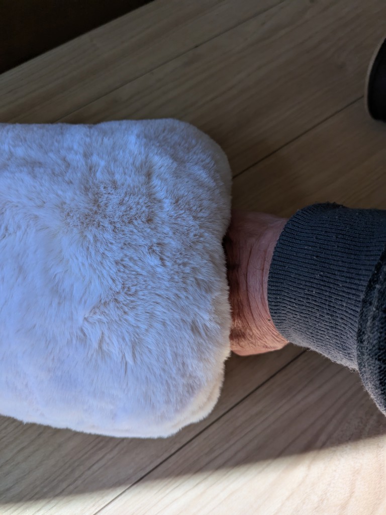 朝の通勤時車のなかで膝にのせて…夜は湯たんぽとして抱えて寝てます。ポカポカで眠りも良いです。
