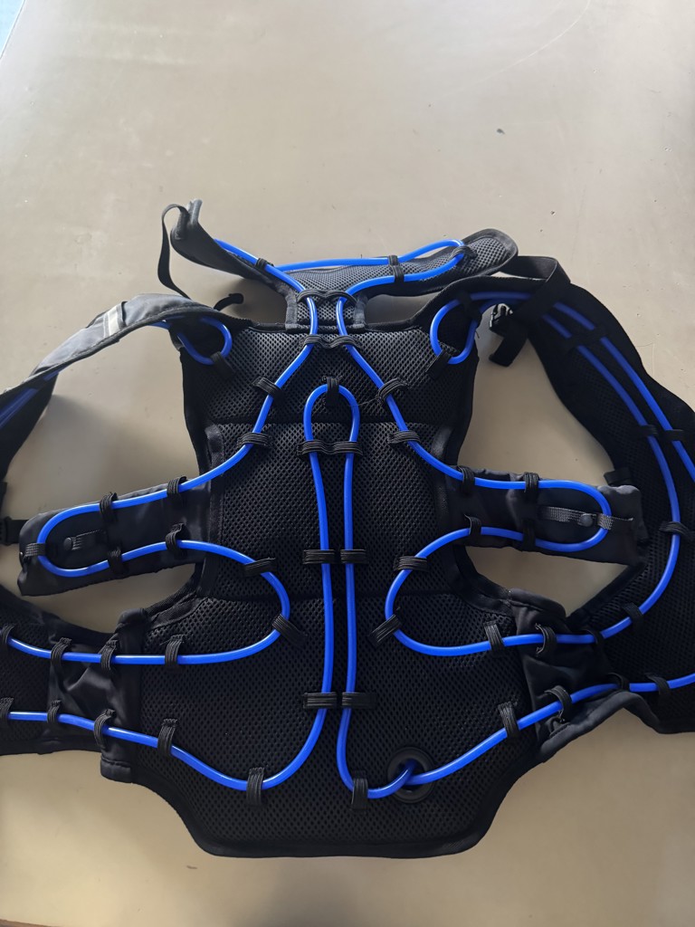 使用しての感想は、頭を下げると首元が冷却管より離れるのと、胸元のクロスで留め具が少し圧迫感が有る!