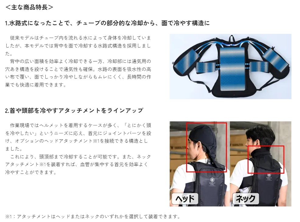 さらに、ユーザーからのニーズに応え、頭や首を冷却するアタッチメントも登場。